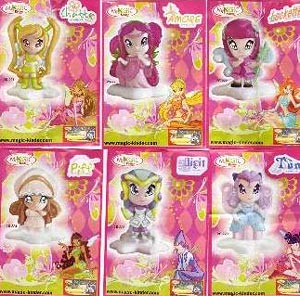 In Dänemark sind die Asterix und die Wikinger Figuren in den links zu sehenden 3er Packs zu bekommen. Rechts ist der dänische BPZ von "Verlobte von Grautvornix" zu sehen. Die Vorderseite zeigt die ganze Serie ohne Namen. Danke für die News an: Annemarie Brantsen. Die Pixie Serie aus Italien besteht aus 6 Figuren. Auf dem Bild sind alle 6 BPZ der Figuren zu sehen. Unten rechts auf dem BPZ sind die Figuren vom Winx Club zu sehen. Quelle: [Diese eBay Auktion]