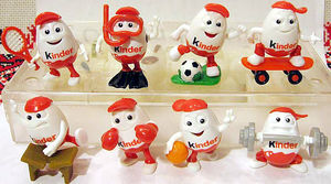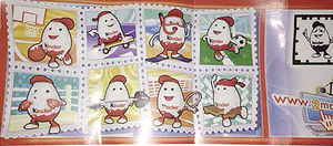 Der neue Kinderino Satz besteht aus diesen 8 Sportler Figuren. Es ist ein Tennisspieler, Taucher, Fußballer, Skater, beim Karate, Boxer, Basketballer und Gewichtheber. Hier der Beipackzettel zur Serie. Die Eiermänner sind alle in Briefmarkenform dargestellt. Rechts oben ist der Internet Code zur Serie abgebildet. Die Umverpackung der Ü-Eier ist auf die Serie zugeschnitten und zeigt die einzelnen Figuren. Desweiteren gibt es die Figuren in 3er Packs.
