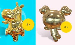 Was es alles zu gewinnen gibt und in welcher Stückzahl könnt Ihr auf kinderueberraschung-codepromo.de sehen. Die Highlights aus dem Gewinnspiel sind diese beiden goldenen Figuren, die es je 3 mal zu gewinnen gibt.