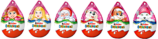 Die rosa Mädchen Eier werden im 36er Tehkendisplay ausgeliefert. Das rosa Ei gibt es in sechs unterschiedlichen Weihnachtsmotiven, genau wie das Serien Ü-Ei aus dem klassischen 72 Display.