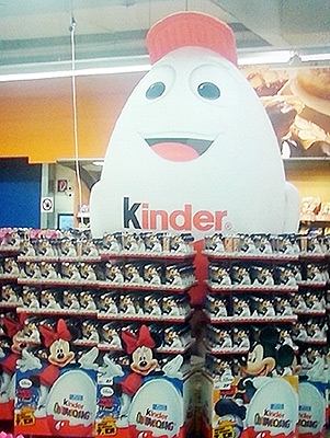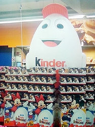 Dieser gigantische Eiermann ist ca. 3 Meter hoch. Das Foto wurde in einem Real Markt in Erfurt geschossen. Damit der Eiermann noch mehr auffällt, ist er von innen beleuchtet. Um den Riesen stehen 4er Packs von Micky Maus und Freunde. Danke für die News an den Eierlei User Powerporky