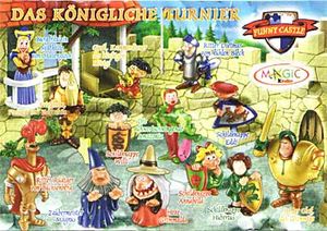 Irgendwie ist die Nebenserie Funny Castle noch gar nicht richtig erwähnt worden. Der BPZ zeigt alle 13 Figuren zur Serie. Die Figuren sind zum Teil aus Vollmaterial oder Steckfiguren, kommt halt auf die Größe an. Zur Serie gibt es wie bei den Maulwürfen entsprechendes Spielzeug mit dem Titeln "Im Zauberwald" oder "Freche Turnier-Rösser". Bleibt abzuwarten, wie weit die Serie gesammelt wird und dann der Wert zustande kommt.