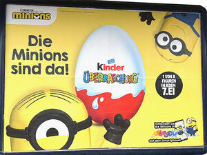 In knallgelb ist dieses Werbeplakat jetzt zu entdecken. Spannweite des Plakates ist 3 mal 2 Meter. In der Mitte steht das Kinder Überraschungsei, damit auch klar wird, dass es keine reine Minions Werbung ist.