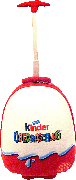 Aus einem Ferrero Gewinnspiel stammt dieser Ü-Ei Koffer. Abgesehen von der coolen Ü-Ei Optik haben die Räder eine Blinkfunktion. Mit der Blinkfunktion wird der Koffer zu einem wahren Eyecatcher ;-)Die Auflage des Koffers ist uns nicht bekannt. Mehr Bildmaterial und zu bekommen in [Dieser eBay Auktion].