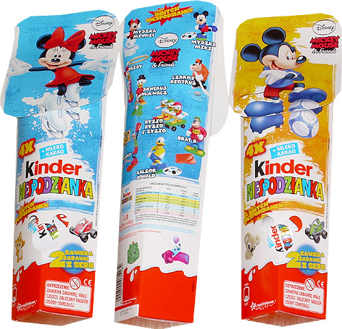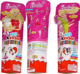 Diese schönen 4er Packs von Micky Maus und Freunde kommen aus Polen. Es sind zwei unterschiedliche Motive, mit Micky Maus und Minni Maus. Garantiert werden 2 Figuren pro Packung. Auf der Rückseite sind die Figuren zur Serie aufgelistet und benannt. Bei dem Barbie 4er Pack gibt es ebenfalls zwei unterschiedliche Motive. Im unteren Bereich der 4er Packungen sind Spielzeuge für Mädchen abgebildet. In der Ukraine gibt es die Barbie Trendy mit silbernen Kleid. Es ist keine Variante, sondern dort die Serienfigur. Die acht anderen Barbies sind die gleichen wie in Deutschland. Die Figuren zur Serie jetzt im Eierlei-Shop. de Quelle: [ue-ei-stammtisch. de]