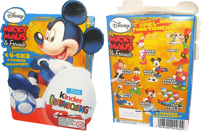 Von Barbie und Micky gibt es die bekannten 4er Packs. In den 4er Packs werden zwei Figuren der Serie garantiert. Auf der Vorderseite ist Barbie als Rockstar zu sehen und bei Micky Maus & Freunde natürlich Micky Maus als Fußballer. Auf der Rückseite sind alle Figuren zur Serie mit Namen abgebildet.
