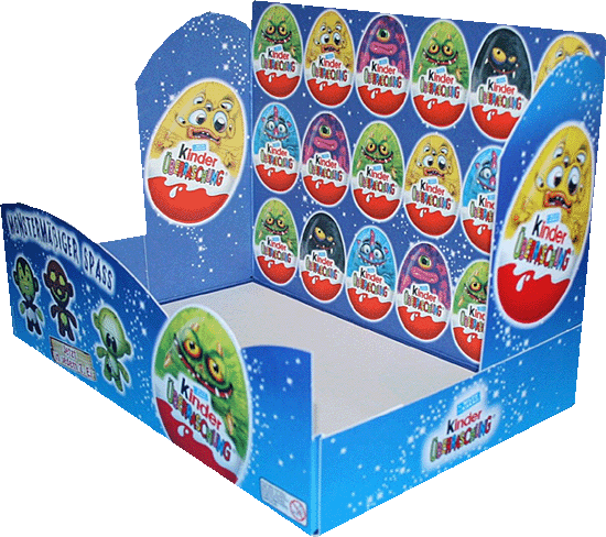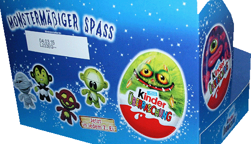 Für Helloween gibt es diese extra Ü-Ei Serie von Ferrero. Der Satz Twistheads SPOOKY SPECIES besteht nur aus vier Figuren. Dies sind die extra gruseligen, aber auch sehr sympatischen Umverpackungen der Helloween Ü-Eier. Dies ist eine Detailausschnitt der Rückseite des Thekendisplays der SPOOKY SPECIES. Die Überschrift "Monstermäßiger Spass" und die vier Figuren der Serie sind zu sehen. Das untere Bild zeigt einen komplett schön designtes Thekendisplay. Im Shop haben wir die ersten Sätze der Serie im Programm. [Zum umfangreichen günstigen Ü-Eier Shop auf Eierlei. de].