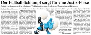 Die "Düsseldorfer Nachrichten" berichtete am Samstag den 21. Oktober über Ü-Eier. Wir haben nur Wind von dem Bericht bekommen, da die Zeitung von uns ein Bild des Fallrückzieherschlumpfes bekommen hat. In dem Bericht geht es um die typische Geschichte, dass jemand im Internet (sehr wahrscheinliche eine Auktion) Fälschungen gekauft hat und die Angelegenheit vor Gericht geht. Um den ganzen Bericht in Original Größe zu lesen, bitte aufs Bild klicken. Fazit: Nicht nur das der Käufer den Schaden hat, sondern auch noch verklagt werden könnte. Unsere Empfehlung, fälschungsgefährdete Figuren oder deren Zubehör nur beim Händler Deines Vertrauens zu kaufen, der sich mit Original und Fälschungen gut auskennt .