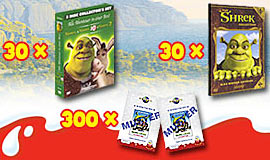 Auf Toggo. de läuft ein Gewinnspiel, wo es dieses 3 Preise gibt. Die Chancen scheinen nicht schlecht zu stehen, eine der 300 Kinokarten zum Film Shrek der Dritte zu gewinnen. Ab sofort bieten wir im Shop alle 10 Shrek Figuren als Einzelfiguren an: [Shrek der Dritte] [Zu der Raritäten Rubrik] [Varianten] [Sonderangebote] [Ü-Ei Sätze]