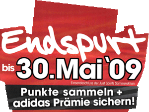 Seit Anfang des Jahres können Punkte von Ferrero Leckereien gesammelt werden. Die gesammelten Punkte müssen in ein Sammelheft geklebt werden. Die Prämien sind Sportprämien von Adidas. Dieses Heft gibt es auf [justsports. de], sowie umfangreiche Informationen zur Sammelaktion. Das Bild zeigt einen Palettenanhänger von der Just Sport Sammelaktion. Wichtig ist dabei, dass der Einsendeschluss der 30. Mai ist.