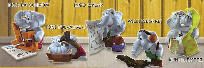 Auf diesem Detailausschnitt der aktuellen Ferrero Werbemappen sind die Namen der Heimwerker gut lesbar. Die Figuren verkörpern ihre Namen oder umgekehrt ;-). Da der Satz aus 10 Figuren besteht, gehts hier mit diesen fünf Heimwerkern weiter: Danke an Hans Dieter für die Bilder. Quelle: [Diese eBay Auktion]