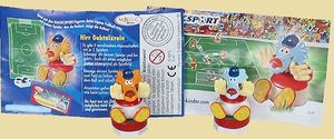 Leider wird die Figur Hirr Gehtnixrein mit blauem Gesicht gerne als deutsche Variante angeboten. Wir möchten mit diesem Artikel darauf hinweisen, dass es sich nicht um eine Variante handelt, sondern um eine Auslandsfigur. Tatsache ist, dass die Auslandsfigur mit blauem Gesicht tatsächlich in den deutschen Eier zu finden ist und das auch noch seltener als die normale Figur, aber es ist ein ausländischer BPZ dabei, der dann von den Händlern mit dem deutschen getauscht wird. Im Eierlei Shop gibt es alle Einzelfiguren der Magic Sport Serie und den Komplettsatz. [Zum Eierlei Shop]