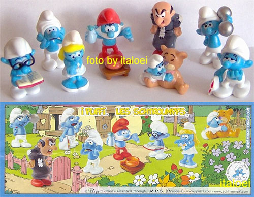 In Frankreich kommt dieser Schlumpf Satz in die Ü-Eier. Diesmal ist Gargamel dabei und Babyschlumpf. Bei den 8 Figuren handelt es ich wieder um Steckfiguren. Nun ist die große Frage, ob es diese Serie auch in Deutschland 2011 geben wird. Der 3D Kinofilm der Schlümpfe läuft am 4. August 2011 an. [Kinotrailer der Schlümpfe] Der Satz ist in dieser Auktion schon zu bekommen: Zur eBay Auktion
