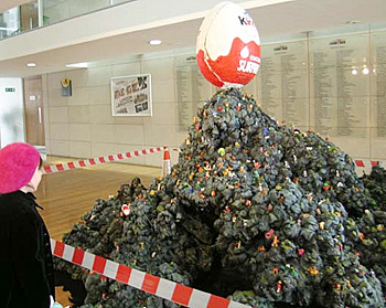 Dieses Kunstwerk ist von Duncan Mckellar. Für uns sieht es aus wie ein Vulkan. Auf der Spitze ist ein drehendes Ü-Ei. Auf dem Weg zum Ü-Ei sind alles Ü-Eier Figuren oder Spielzeug zu sehen. Die Beschreibung zum Kunstwerk zu interpretieren ist komplex und deswegen lassen wir es lieber ;-) [Noch mehr Bilder und die Beschreibung zum Kunstwerk]