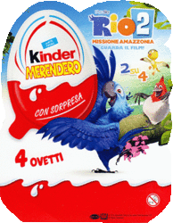 Das Cover vom italienischen 4er Pack Rio 2 ist den Paradiesvögeln entsprechend sehr farbenfroh gestaltet. Es werden 2 Figuren der Serie pro 4er Pack garantiert. Die Figuren stecken im Kinder MERENDERO Ei. Der Satz besteht aus 9 Figuren, genau wie der kommende deutsche Satz. [Live Suche auf eBay nach RIO 2 starten].