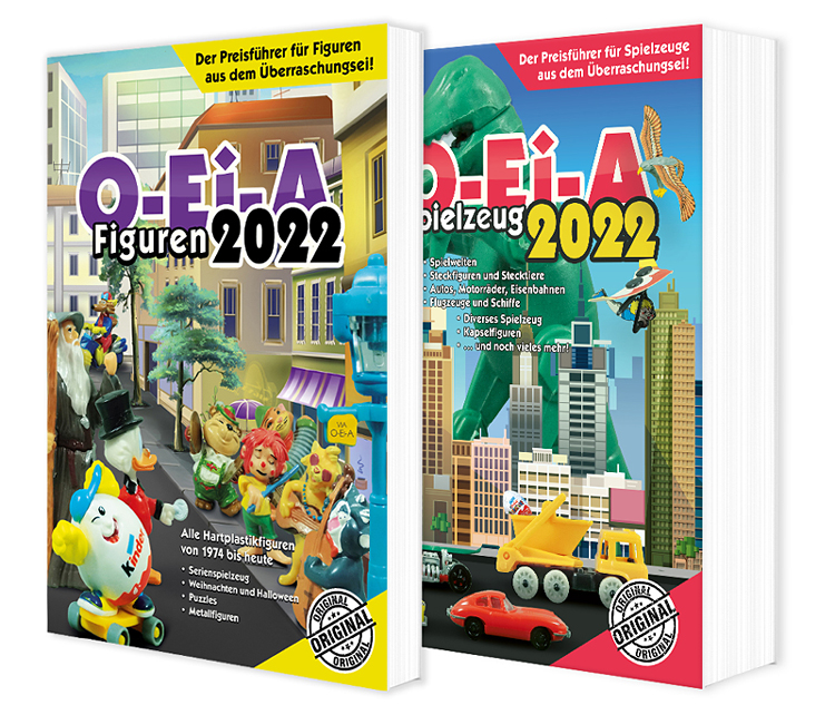 Beim „O-Ei-A Figuren 2022“ ziehen die Figuren auf der Straße vorbei wie bei einem Straßenumzug und werden dabei musikalisch vom Gehweg begleitet. Beim „O-Ei-A Spielzeug 2022“ sind Fahrzeuge auf der Straße vor den Hochhäusern unterwegs. Den dritten Katalog „O-Ei-A Spezial“ gibt es alle 2 Jahre.