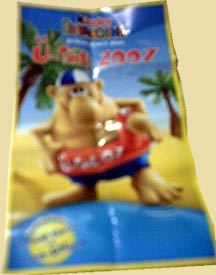 Es gibt eine neue Figur bzw. abgeänderte Version von Volker Vorsicht. Die Figur unterscheidet sicht dadurch, dass der Rettungsring komplett rot ist und mit dem Schriftzug "Ü-Tag 07" versehen wurde. Leider ist das Bildmaterial nicht sehr gut, aber wir bekommen gewiss noch bessere Bilder. Das Bild rechts zeigt den extra BPZ von Volker Vorsicht. Der BPZ ist im Hochformat wie es bei Ronnie Riesenei der Fall ist. Auf dem BPZ steht oben "Ü-Tag 2007". Diese besondere Figur hängt wahrscheinlich mit dem Ü-Ei Gewinnspiel auf Toggo. de zusammen, wir berichteten kürzlich. Wir gehen jetzt davon aus, dass das Ü-Ei in der Ente aus dem Gewinnspiel die Sonderfigur enthält. Eine der Sonderfiguren wurde erst in unserem Forum gezeigt, danach wurde innerhalb kürzester Zeit in einer eBay Auktion mit der Figur die 100 Euro Grenze überschritten [Link zu der ersten eBay Auktion von Volker Vorsicht]. Leider ist noch nicht bekannt wieviele es von diesen Sonderfiguren geben wird. Mehr zu dieser äußererst spannenden Sonderfigur findet ihr in diesem Eierlei [Foren Beitrag].