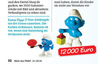 Die Themen waren Ü-Ei Schlümpfe, Steiff Tiere, alte Kinderbücher und Carrera Rennbahnen. Ausgabe 81/2018.
