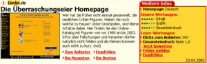 Die Internet Seite www.kostenlos.de entdeckte am 23.04.2003 den kostenlosen online Katalog (Preiskatalog) auf Eierlei.de! Schön zu sehen war auch die Gesamtnote 1 von der Bewertung der Kostenlos.de-Besucher.