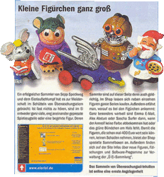 Ein erfolgreicher Sammler von Sepp Speckweg und dem Eierlaufschlumpf hat es zur Meisterschaft im Schütteln von Überraschungseiern gebracht: Ist fast nichts zu hören, sind im Ei entweder ganz viele, eng aneinander gepresste Spielzeugteile oder eine begehrte Figur. Deren Sammler sind auf dieser Seite denn auch goldrichtig. Im Shop lassen sich neben einzelne Figuren ganze Serien kaufen. Außerdem erfährt man, worauf es bei den Figürchen ankommt: Ganz besonders wertvoll sind Emma E-Mail, Alex Absturz oder Sascha Surfer dann, wenn der Armreif keine Farbe abbekommen hat oder das grüne Bündchen am Hals fehlt. Damit die Figuren, die schon mal 400 Euro wert sein können, keine Schaden nehmen, bietet der Shop spezielle Sammlerboxen an. Außerdem finden auf der Seite Infos über neue Figuren, Fälschungen und Software-Programme zur Verwaltung der "Ü-Ei Sammlung".